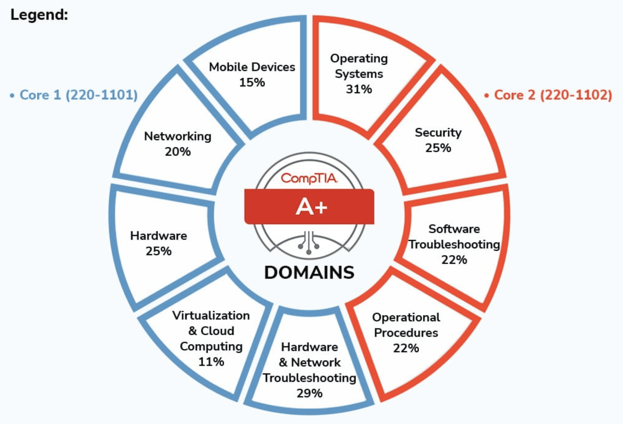 With a focus on core IT tasks such as installation, configuration, diagnostics, preventative maintenance, and basic networking and security, this certification ensures you're equipped to handle essential technical responsibilities. Additionally, it highlights the importance of customer service and communication skills to effectively work with clients. Accredited by the International Organization for Standards (ISO) and the American National Standards Institute (ANSI), CompTIA A+ sets you apart as a competent and reliable IT professional.